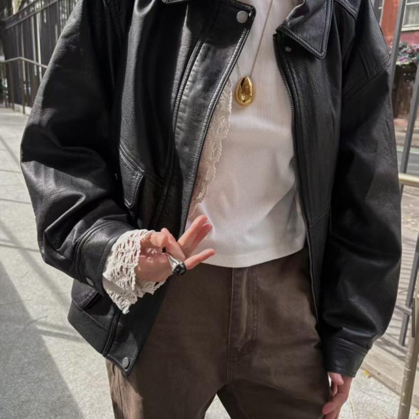 秋冬look 必備闊身皮褸